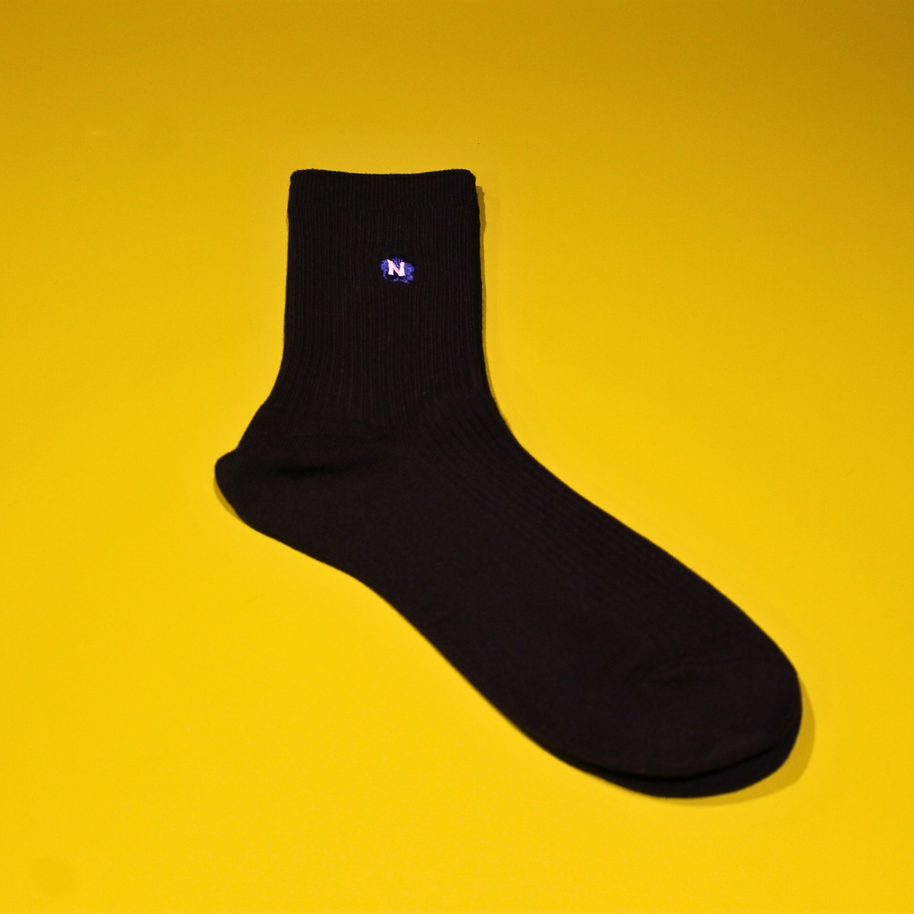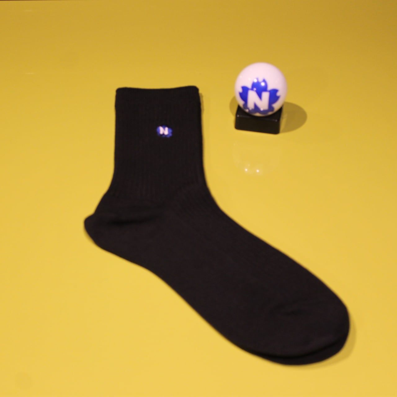 吸い付くようなフィット感と、ふっくら・さらっとした履き心地が魅力の「スタンダードリブソックス」に、青の「桜にN」を刺繍しました。